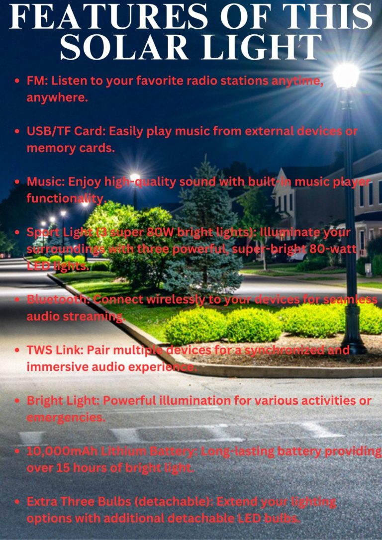 WITH THE CURRENT HIGH COST OF FUEL, YOU NEED THIS SOLAR LIGHT. IT HAS A LONG-LASTING BRIGHTNESS THAT LASTS ALL NIGHT LONG. WHAT ARE YOU WAITING FOR? MAKE YOUR ORDER NOW!